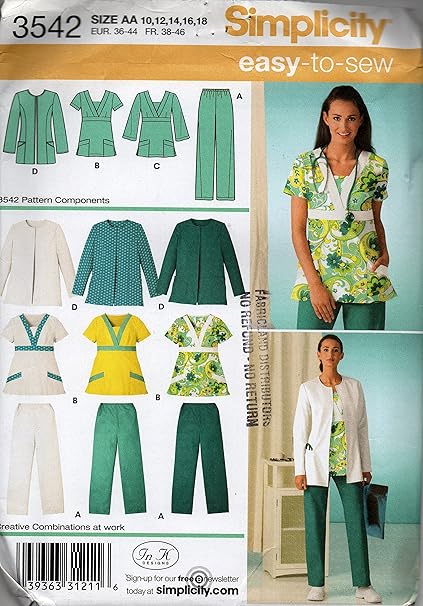 Amazon Com Simplicity Easy To Sew Pattern 3542 Women S Scrub Pants Top And Jacket Sizes 10 12 14 16 18 Arts Crafts Sewing