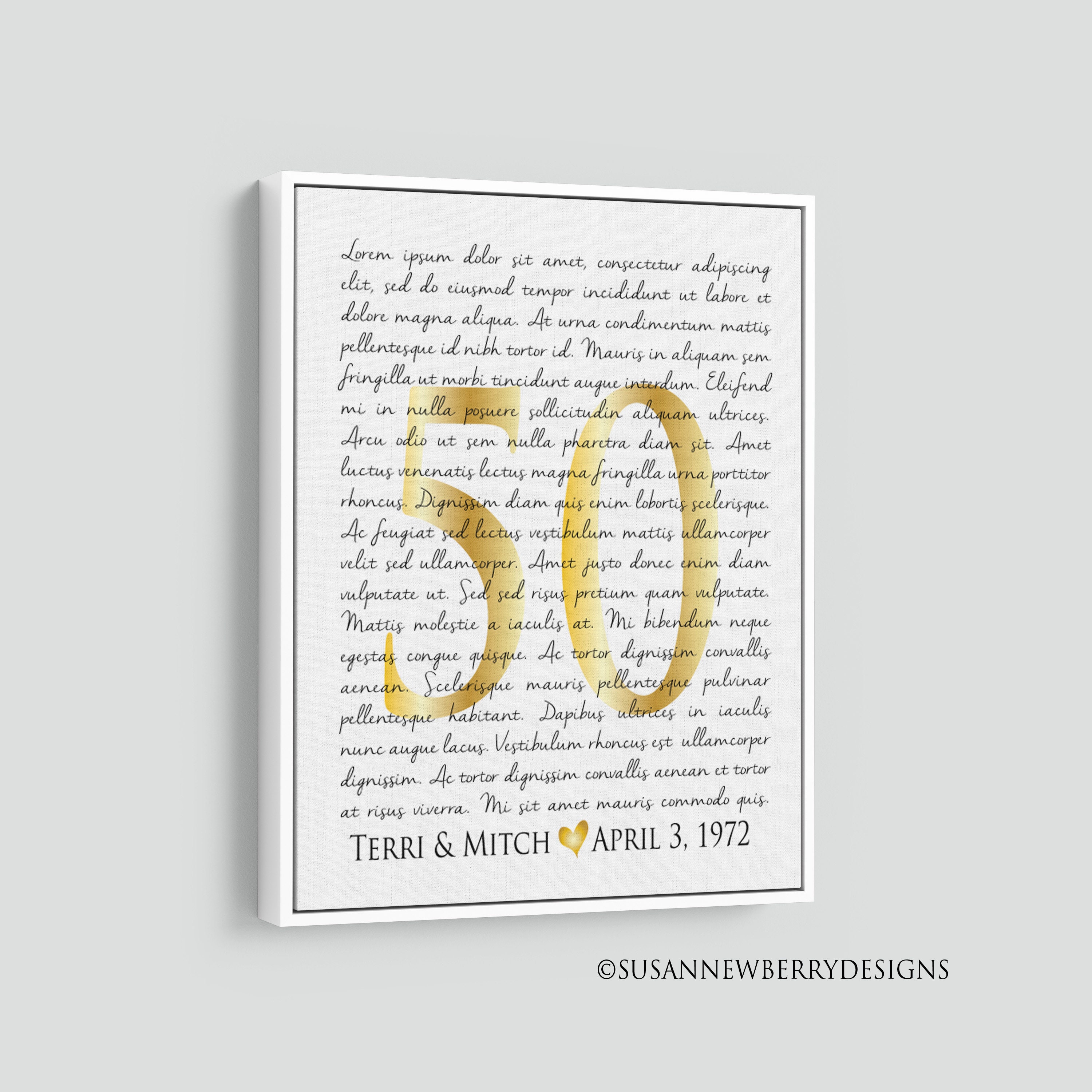 50th Anniversary Gift Wedding Vows Or Song Lyrics Canvas Etsy Uk